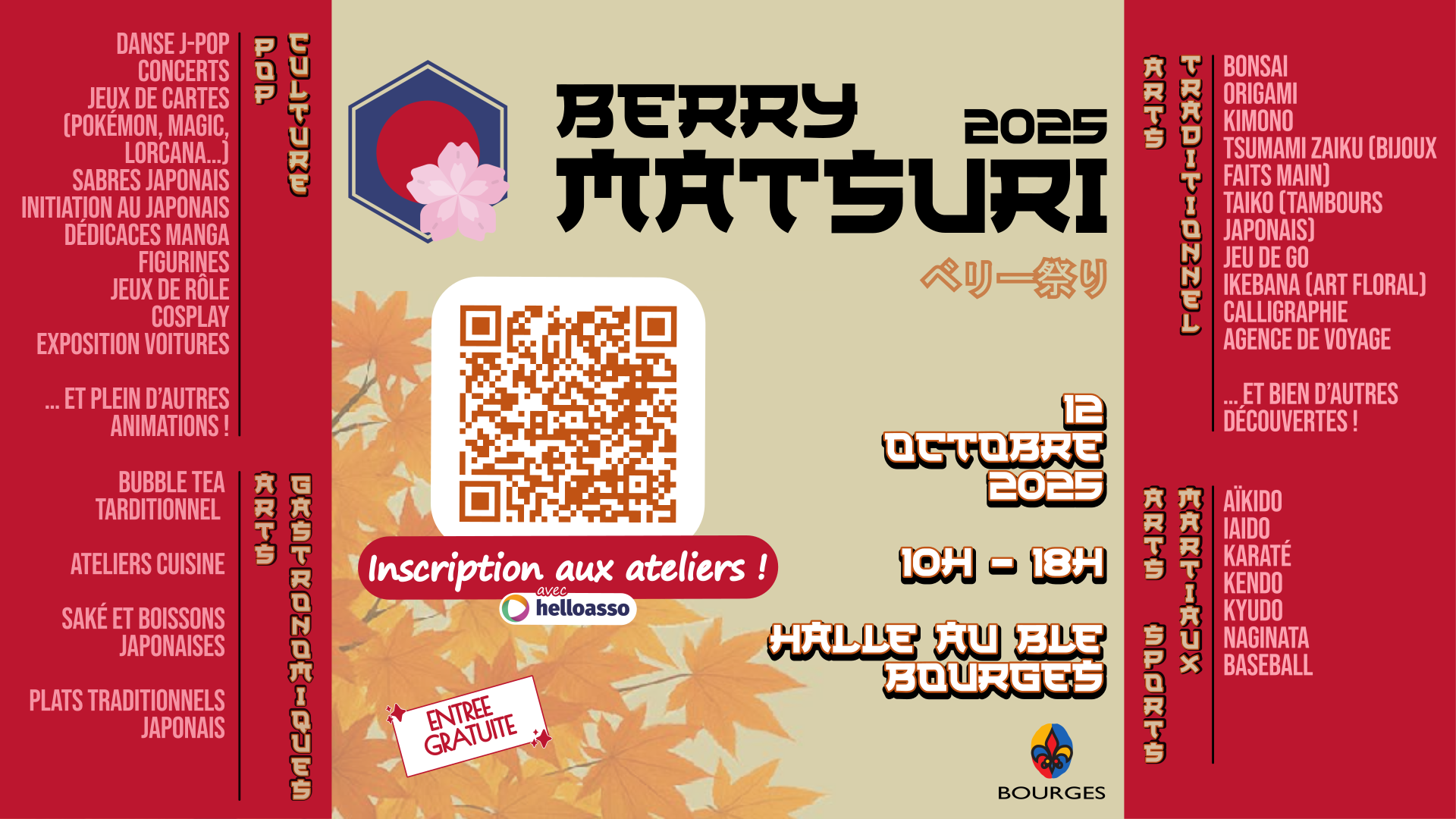 Au croisement des cultures, l’association réunit celles et ceux qui font vivre l’esprit japonais dans le Berry : arts martiaux, traditions, échanges, festivals, projets collectifs… un univers en pleine floraison.